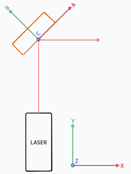 Let’s set up two coordinate systems, one aligned to the laser (XYZ) and one embedded in the face of the grating (ABC):