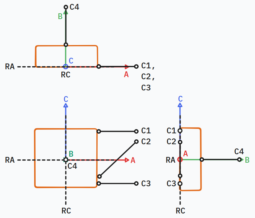 We know that intersecting constraints create an instant centre of rotation, so all four of our constraints need to intersect the desired degrees of freedom.